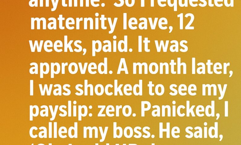 He said, “Congrats! Take leave anytime.” I requested 12 weeks of fully paid maternity leave, and it was approved. I felt supported until I saw my payslip a month later: zero. Panic hit—savings couldn’t cover bills or baby prep. I called my boss, who casually said, “I told HR you wanted unpaid leave.” Stunned, I clarified I’d applied for paid leave, but he admitted he misread the form, saying I’d be paid upon return. Unacceptable with a baby coming.