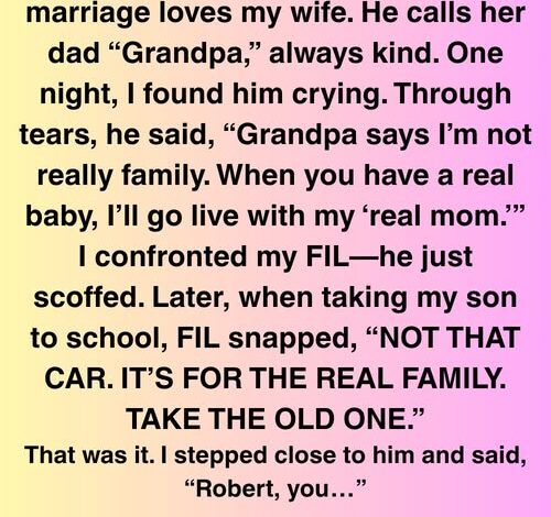 My 10-year-old son, the joy of my life, quickly bonded with my wife after our remarriage, calling her “Mom” and her father “Grandpa.” Everything seemed perfect until I found him crying one night. He told me his step-grandfather said he wasn’t “real family” and would be sent away when my wife and I had a “real baby.” His pain broke my heart. No child should feel unwanted.