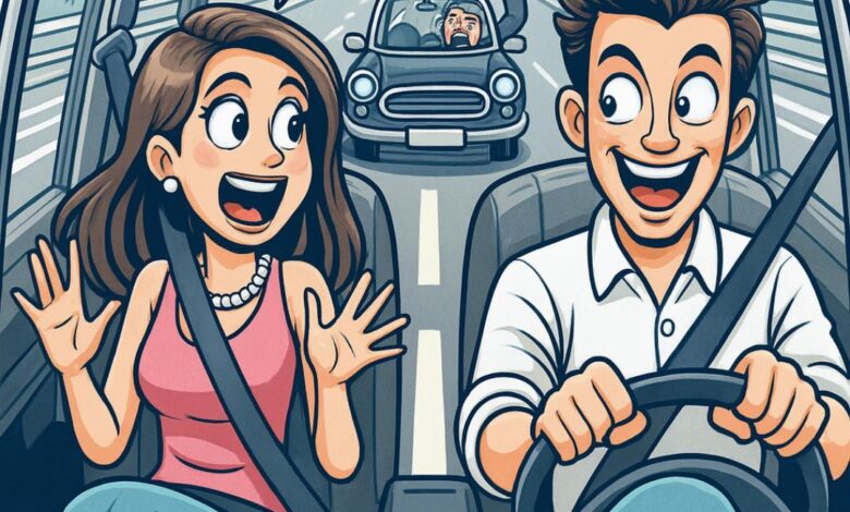 A married couple is driving along a highway doing a steady 40 miles per hour