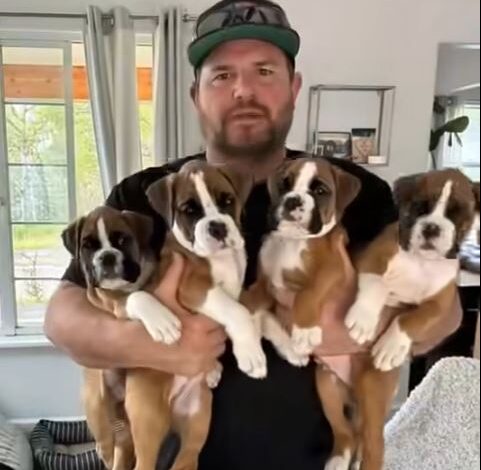 One chaotic morning—spilled coffee, traffic, and running late—I pulled over on County Road 12 to find four shivering boxer puppies in a muddy ditch. No mother, no houses, just a collapsed box and their frightened eyes. I couldn’t drive past. Using an old hoodie, I scooped them into my car, noticing a fraying red collar on one with a brass tag reading “Hope.” It felt like more than a name—a message.