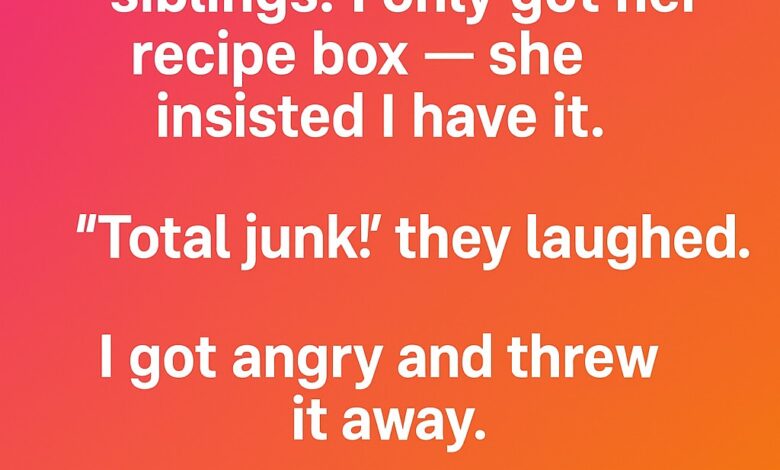 When my grandmother entered a nursing home, she distributed her jewelry and antiques to my siblings, but left me a small wooden recipe box. My siblings mocked it as “junk,” and, hurt, I set it aside. Later, my neighbor spotted it by the trash and asked if I knew its value. Curious, I invited her in. She revealed not just recipes inside, but handwritten notes, old photos, and keepsakes—each card a memory, a piece of my grandmother’s life.