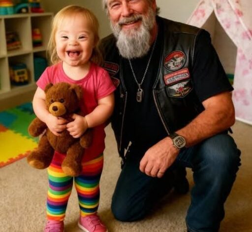 Ruby, a two-year-old with Down syndrome, was rejected 43 times by potential adoptive families who saw her as a burden. I’m John “Bear” Morrison, a 64-year-old widower and motorcycle mechanic, living alone above my shop. I’d been fixing the adoption agency’s vehicles for free when Ruby, in her pink shirt and rainbow leggings, toddled up to me, demanding “Up!” Her almond-shaped eyes sparkled, and she called me “Bear friend.”