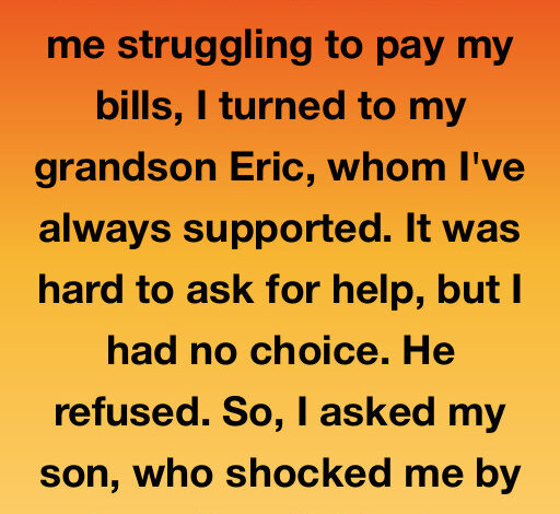 After a heart attack left me struggling financially, I asked my grandson Eric, whom I’d always supported, for help. He refused. Turning to my son Ben, I was shocked when he accused me of never trusting him, always favoring Eric. Stung, I admitted I’d been closer to Eric, perhaps because he reminded me of my late wife. Ben gave me $300, barely enough for bills, and questioned why Eric didn’t help.