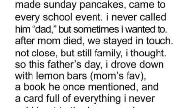 these bikers saved me. Mason remembered me giving him candy as a child, a kindness I’d forgotten. They weren’t thugs but veterans and recovering addicts running a soup kitchen. They cared for me—fixing my home, feeding my cat—revealing their true nature. A drawing Mason kept, thanking me for seeing him as a boy, shattered my misconceptions. I lived eleven months more, filled with their laughter and care. At my death, they honored me with fifty motorcycles at my funeral. I learned family isn’t just blood—it’s those who see and forgive you, teaching me to look beyond appearances.