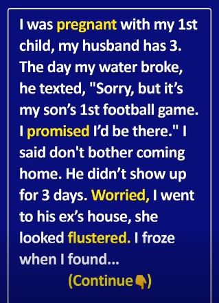 I was pregnant with my 1st child, my husband has 3. The day my water broke, he didn’t come to the hospital. He texted, “It’s my son’s first football game.