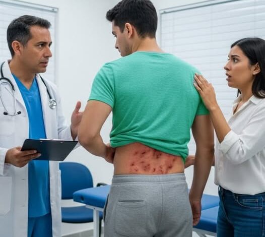 I found dozens of tiny red spots on my husband’s back — they looked like insect eggs. Minutes later, the doctor’s face went pale and said, “Call the police. Now.”