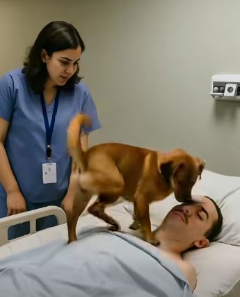 No one can explain it—perhaps the familiar scent, bark, or love sparked his will to live. One doctor murmurs, “Letting the dog say goodbye… saved him.”