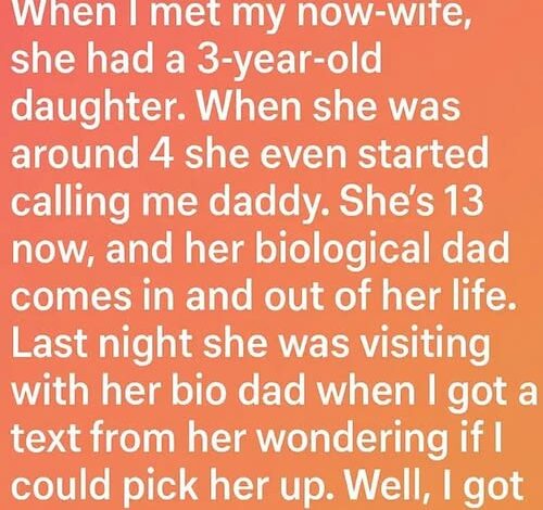 When I met my wife, her 3-year-old daughter soon called me “Daddy.” Now 13, her biological dad is inconsistent, drifting in and out. Last night, she texted me to pick her up from his place. I sensed something was wrong and drove over immediately. She ran to my car, eyes red, clutching her backpack. In the car, she whispered, “Can we just go home?” I didn’t press her. Halfway home, she said, “He doesn’t know my favorite color, my best friend, or