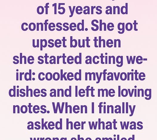 I cheated on my wife of 15 years and confessed. She got upset but then she started acting weird: cooked my favorite dishes and left me loving notes. When I finally asked her what was wrong she smiled and then announced to me that she’d been poisoning my food for the past week.