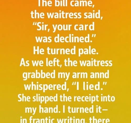 Outside, the waitress caught my arm and whispered, “I lied.” She pressed a folded receipt into my hand and vanished inside.