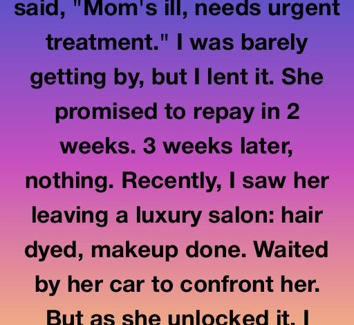 I was irritated, then angry. I replayed that conversation over and over, imagining how I’d confront her. Then one afternoon, I saw her walking out of a luxury salon downtown—fresh hair, flawless makeup. The anger hit instantly.
