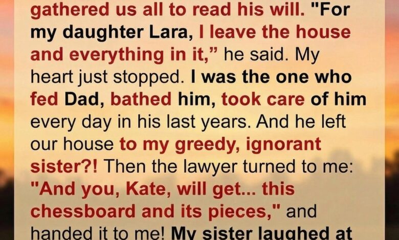 At home, anger boiling, I threw the chessboard on the floor. A piece cracked open—revealing a tiny rolled note. Dad’s handwriting: “Kate, start with the rook.”