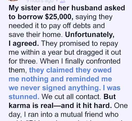 Just like that, my world caved in — not from losing twenty-five thousand dollars, but from losing the trust I thought was unbreakable. In one sentence, the sister I believed would stand beside me forever became a stranger.