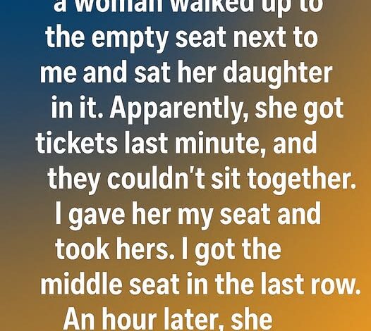 She’d bought tickets at the last minute, and they couldn’t sit together. I offered her my seat so she could be closer to her daughter and took the middle seat in the last row instead. It wasn’t comfortable, but it felt like the right thing to do.