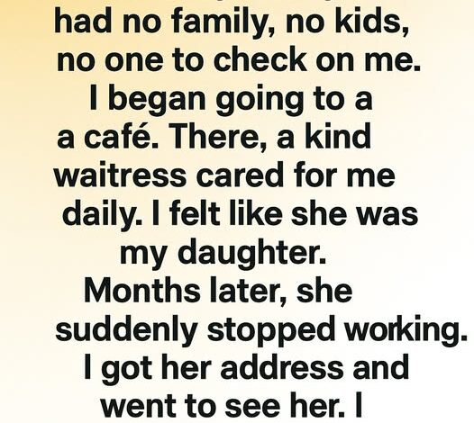 I retired at 64 and felt deeply alone. No family, no children, no one checking in. To fill the silence, I started going to a small café. There, a kind waitress greeted me every day. She remembered my coffee, noticed my moods, and listened when I spoke. Over time, I began to feel like she was the daughter I never had.