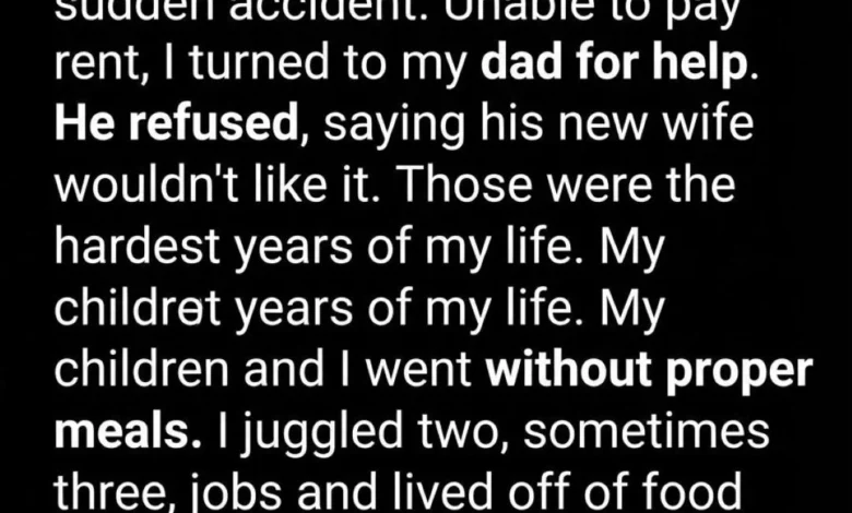 At twenty-three, my life changed without warning. One day I was planning a future with shared dreams; the next, I was a widow raising two young children alone. Grief didn’t arrive with drama—it came quietly and stayed, shaping every choice. Bills didn’t pause for sorrow, and healing didn’t come with deadlines. When the weight became too heavy, I asked my father for help. His refusal was calm, almost gentle, but it left a deep ache—not just for the struggle ahead, but for the loneliness it revealed.