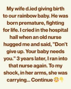 Then an old nurse sat beside me. She didn’t rush, didn’t offer platitudes. She wrapped me in the kind of warmth I remembered from my childhood and whispered, “Don’t give up. Your baby needs you.” I barely registered her face—just her voice and her patience until my breathing slowed.
