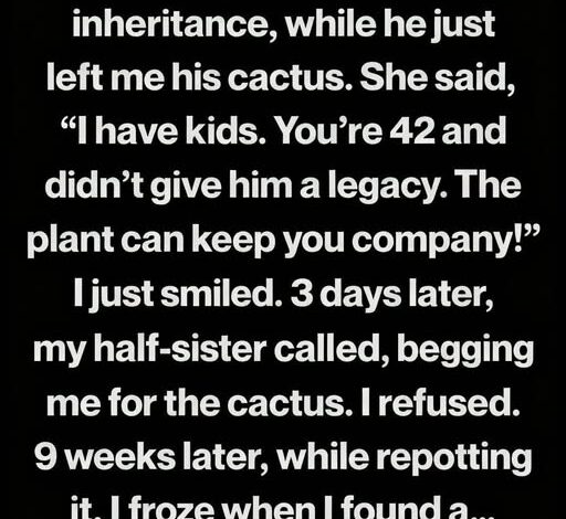 The same dull, awkward plant that had sat by his window for decades. My half-sister laughed lightly and said I should be grateful—it was “something,” after all. I didn’t argue. I took the cactus home.