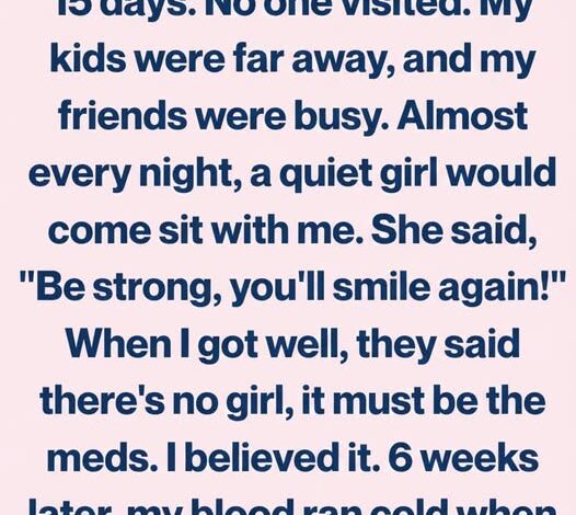 Yet almost every night, a girl appeared. Quiet, maybe thirteen or fourteen, with dark hair tucked behind her ears and eyes far older than her years. She never spoke much, just sat beside me, hands folded, whispering, “Be strong. You’ll smile again.” Her presence became my anchor.