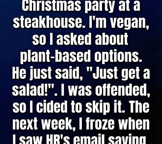 When the invitation to the company holiday party arrived, I hesitated. The venue was a well-known steakhouse, and I’ve been vegan for years—not as a trend, but as a personal choice tied to my values and health. I asked my manager if there would be any plant-based options. His reply was quick: “Just get a salad.”