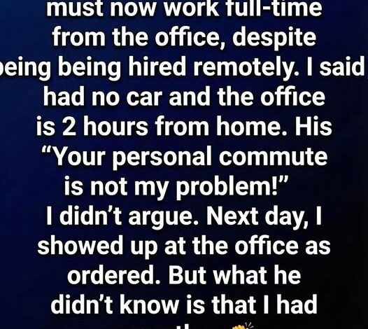When my boss called that afternoon, I expected a routine update. Instead, he said, far too casually, “We’re ending remote work. Starting Monday, you’re expected in the office full-time.”