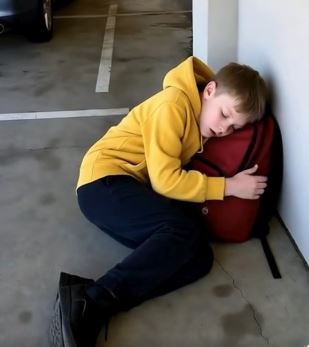 Until I saw him curled up behind a concrete pillar, using his backpack as a pillow.