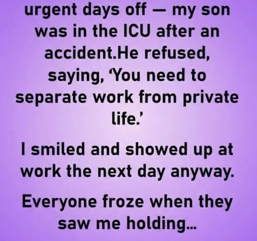I spent the night beside his bed, holding his hand as machines hummed steadily around us. When morning came, I called my manager and asked for five days off to stay with my child. I expected empathy—at least understanding.