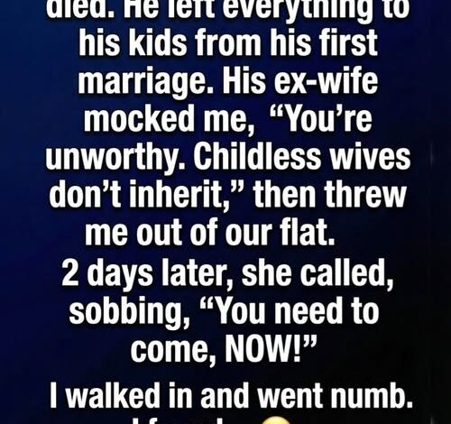 Outside, his ex-wife Nadine was waiting. Her expression was sharp. “You were never meant to inherit,” she said coldly. “A wife without children gets nothing.” She demanded Marina leave the apartment immediately.