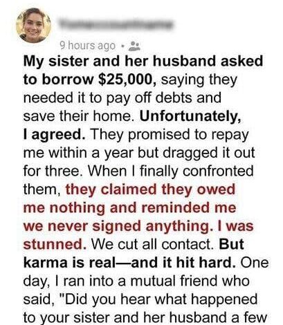 My sister and her husband asked to borrow $25,000, saying it was the only way to pay off debts and save their home. I hesitated—but they were family. I agreed, trusting their promise to repay me within a year.