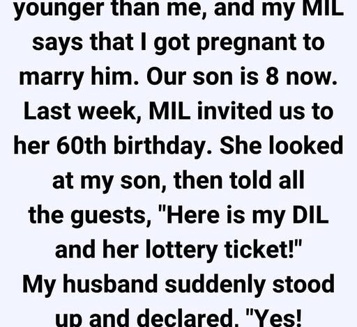 My husband is seven years younger than me, and for years my mother-in-law claimed I got pregnant just to marry him. Our son is eight now. Last week, she invited us to her 60th birthday and, in front of everyone, pointed at my son and said,