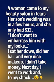 A woman came into my beauty salon in tears. Her son’s wedding was only hours away, and she quietly admitted she had just $12.
