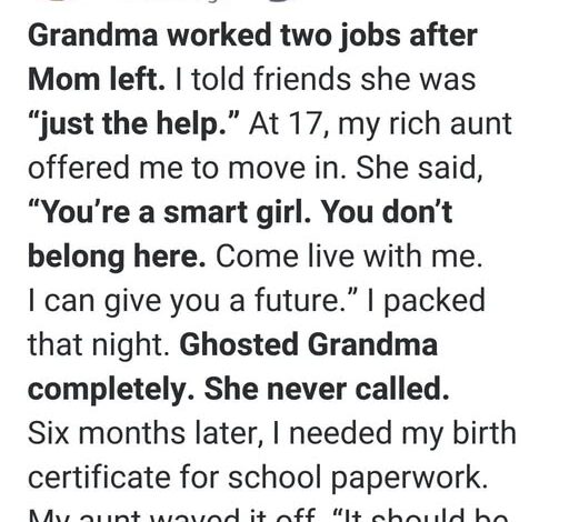 At seventeen, my wealthy aunt offered me a way out. “You don’t belong here,” she said. Grandma didn’t argue. She just asked what I wanted for dinner. I packed that night. I didn’t hug her properly. I didn’t call. I disappeared.