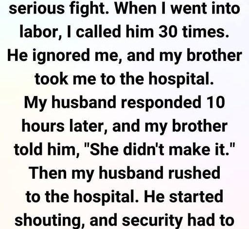 Ten hours after my first call, my husband finally called back. My brother answered and, in anger, told him I hadn’t made it. My husband arrived at the hospital in a panic, only to be escorted out after causing a scene.