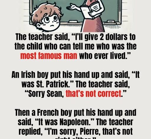 The teacher said, “I’ll give 2 dollars to the child who can tell me who was the most famous man who ever lived.”