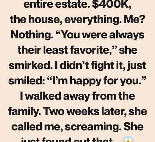 My Sister Mocked Me for Being Cut Out of the Will — Two Weeks Later, She Was the One Calling Me in Tears
