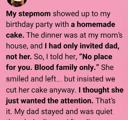 My stepmother arrived at my birthday dinner carrying a homemade cake I hadn’t asked for.