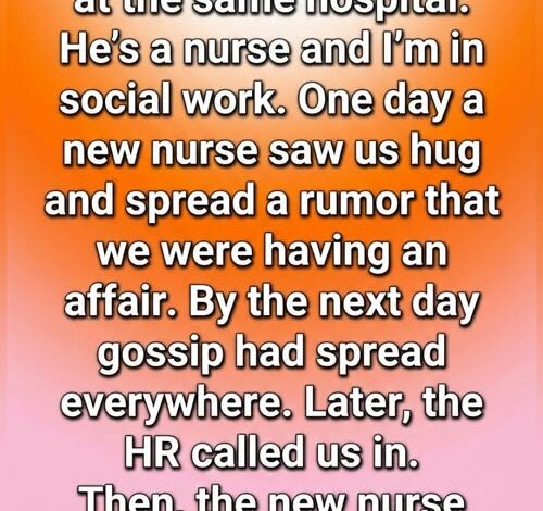 One afternoon, a new nurse saw one of those hugs. By the next morning, everything felt different. Conversations stopped when we walked in. Whispers followed us. Somehow, that brief embrace had turned into gossip about an inappropriate relationship between two staff members.