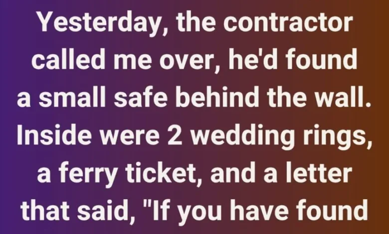 Inside was a small, dust-covered safe, hidden between the studs. My heart pounded as I opened it. There were only three things inside: two simple bands, a ferry ticket to the island we used to visit every summer, and a sealed letter.