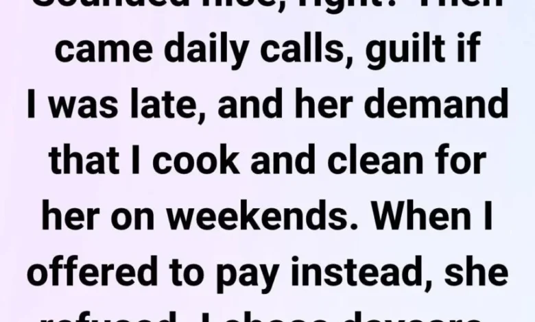So her “free” childcare came with strings attached — ones that basically turned me into her unpaid housekeeper. I politely declined and told her we were enrolling our baby in professional daycare.