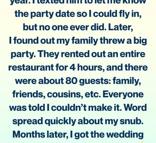 Later, I found out they had rented an entire restaurant for four hours, with about 80 guests. Everyone had been told I couldn’t make it. When I said I was never invited, my family insisted it was a misunderstanding. Over time, the explanation kept changing—from “small gathering” to “miscommunication” to “it’s just a party.”