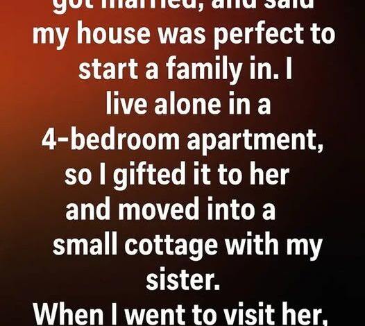 When my daughter got married, she told me my four-bedroom apartment would be the perfect place for her and her husband to begin their life together. I lived there alone, so I gladly handed her the keys and moved into a small, cozy cottage with my sister. I felt proud knowing the home I had worked so hard for would now support the next generation.
