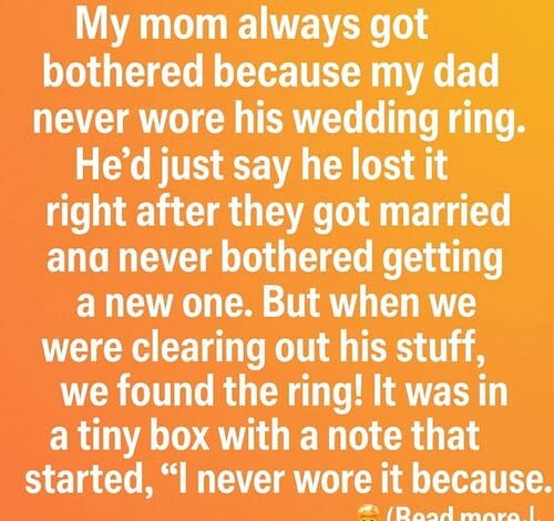 After he passed away, their children helped Maria sort through his belongings. In an old wooden drawer, tucked beneath letters and keepsakes, they found a small box. Inside was his wedding ring, carefully preserved. Beside it lay a handwritten note: