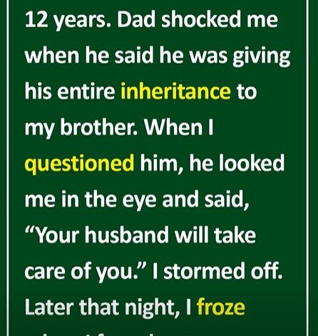Recently, my dad brought up inheritance. I assumed it would be split fairly, but he told me everything would go to my brother. When I questioned it, he said, “Your husband will take care of you.” That hit hard—like my years of support meant nothing.