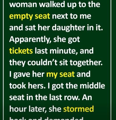 After boarding the plane, a woman approached me and asked if her daughter could take the empty seat next to me so they could sit together. They had booked last minute and were separated. Wanting to help, I gave up my seat and moved to hers — a middle seat in the last row.