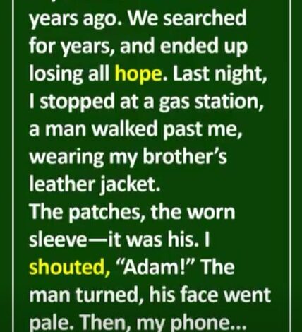 I stopped at a gas station when a man walked past me wearing a leather jacket I instantly recognized—my brother Adam’s jacket. The same patches, the same worn sleeve, every detail exactly as I remembered.