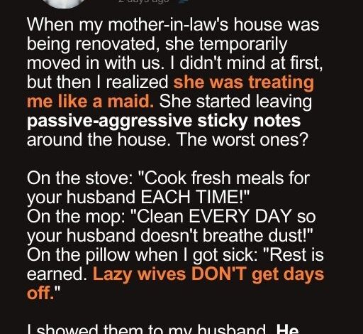 When my mother-in-law moved in during her home renovation, I initially welcomed her. But soon, her passive-aggressive sticky notes—on the stove, mop, even my toothbrush—demanded I cook fresh meals and clean daily, making me feel like a maid in my own home. My husband stayed silent, and her notes escalated, including an offer to “stay longer” to “help.” Frustrated, I left a note asserting I wasn’t a maid. The tension lingered, but a discovery changed everything: an old photo of her with a baby, marked “My little angel, lost too soon.” It humanized her.