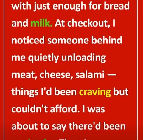 At checkout, I noticed someone behind me quietly adding items to my bill—meat, cheese, salami… all the things I’d been craving but couldn’t afford. I was about to tell the cashier there must be a mistake.