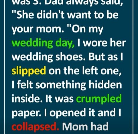 I chose to wear my mother’s old wedding shoes. But as I slipped on the left one, something felt off. Inside was a crumpled piece of paper. I opened it—and collapsed.
