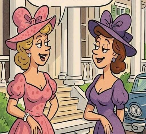 Two Southern Belles were chatting on the porch of a grand white-pillared mansion