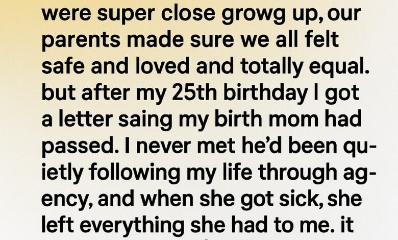 I grew up adopted, feeling equal with siblings Brian and Kayla. At 25, a letter revealed my birth mother, Alina, left me $187,000. My siblings demanded I share it, claiming unfairness, while my parents stayed silent.
